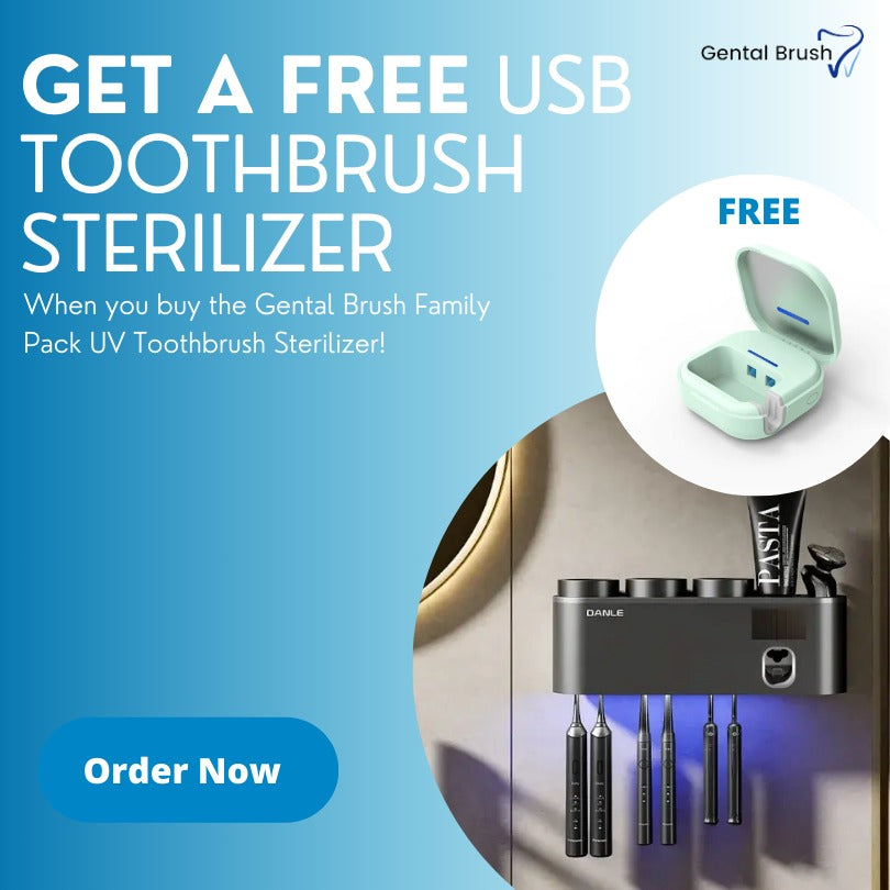 Currently a dwindling offer hurry! Upgrade now to healthier oral hygiene with our UV 50% off Family GEN Pack today! Then add to your cart, your very own on the go USB toothbrush Sterilizer! As a complimentary gift from us to you.